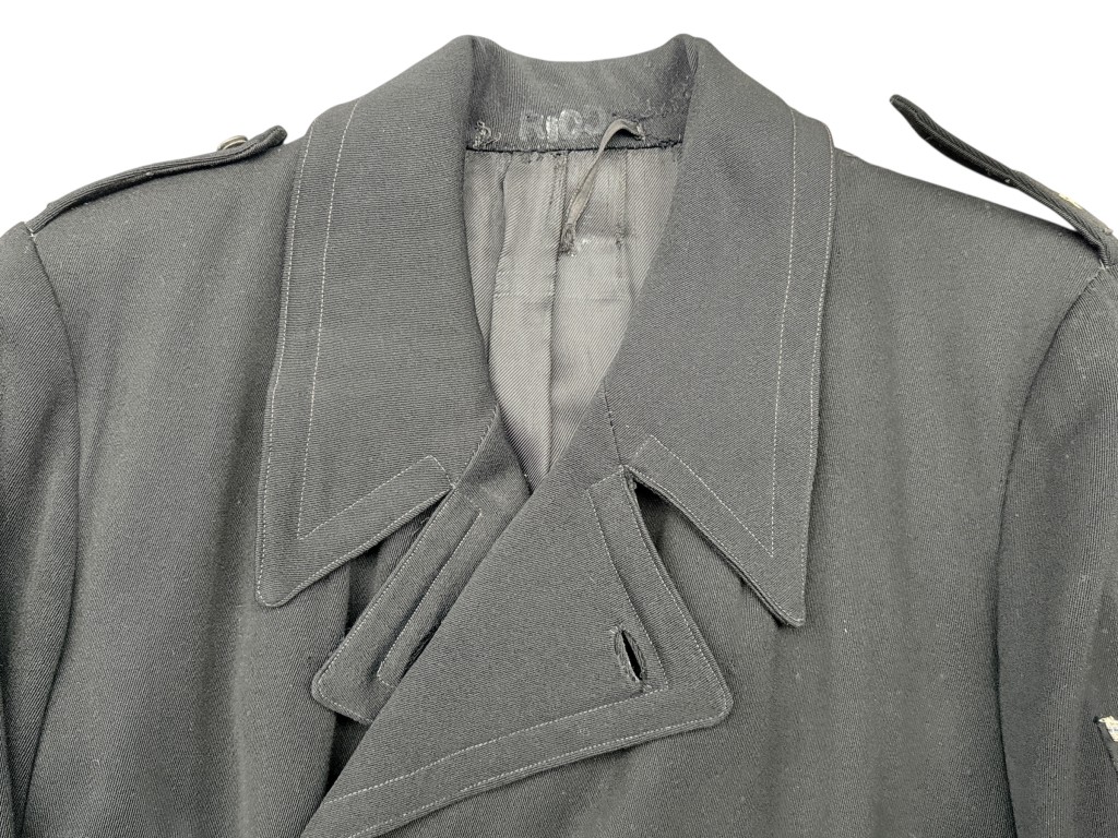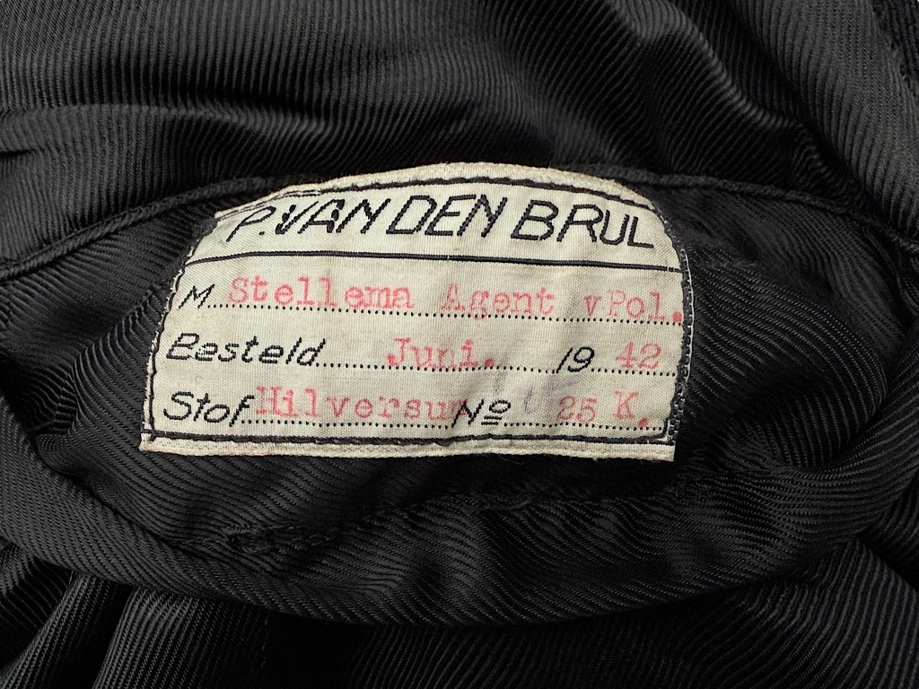 Een zeldzame Nederlandse politie-overjas uit 1942 welke gedragen door politieagent Stellema uit Hilversum. Deze jas werd op maat gemaakt door P. van den Brul in Hilversum in 1942, zoals vermeld op het originele binnenlabel.