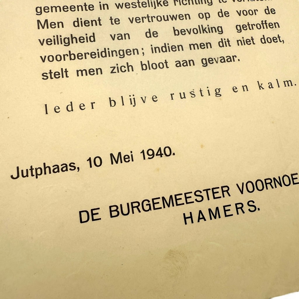 Originele WWII Nederlandse poster Jutphaas 10 mei 1940