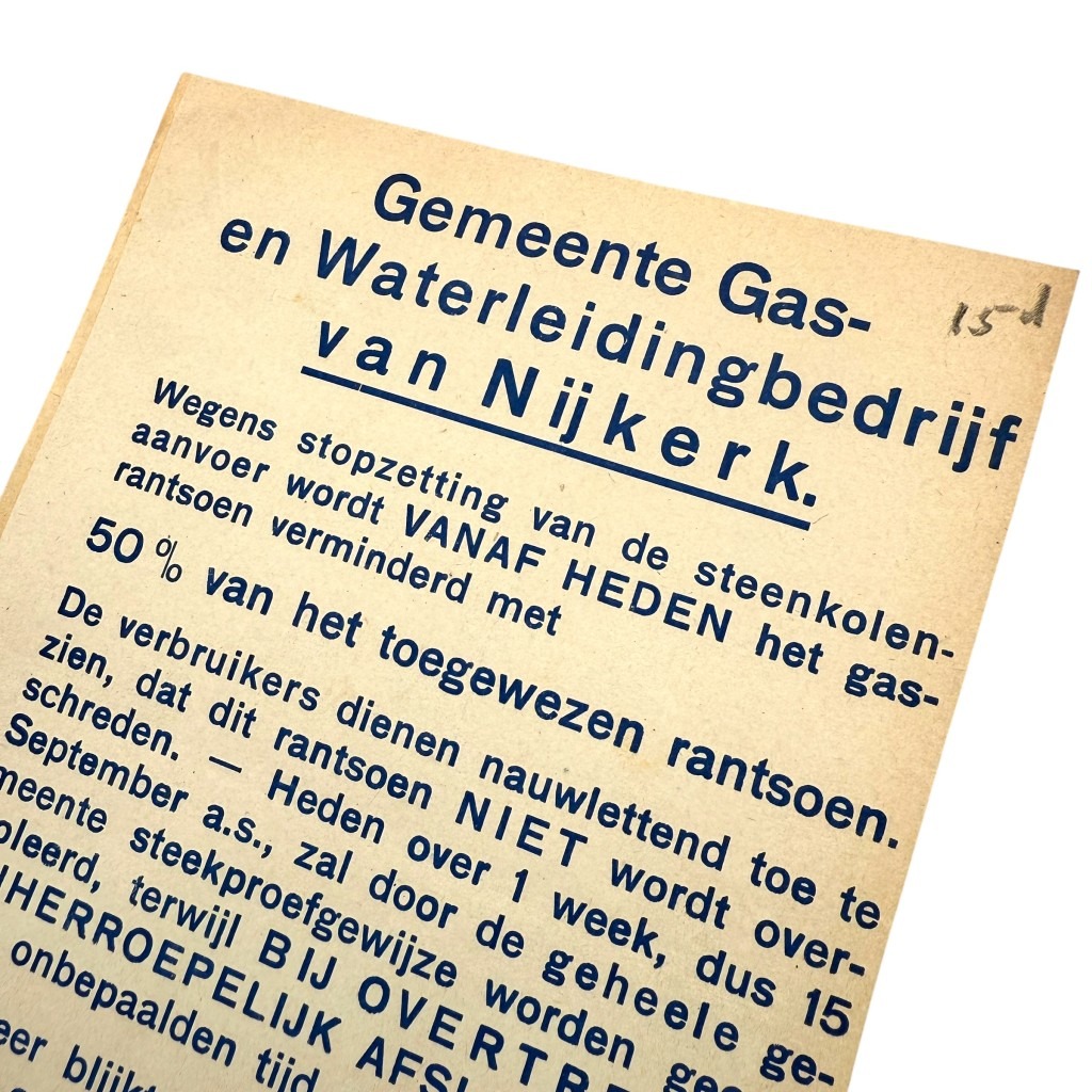 Original WWII Dutch poster regarding gas rations in Nijkerk in 1944