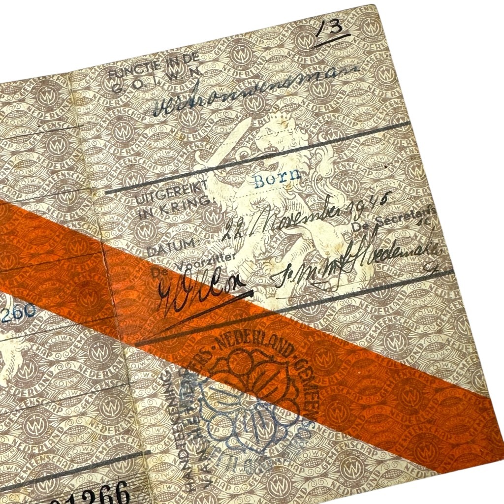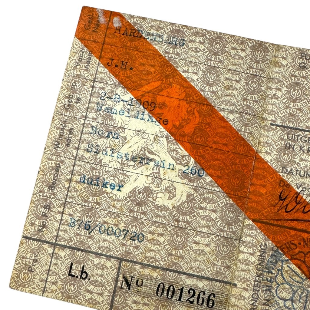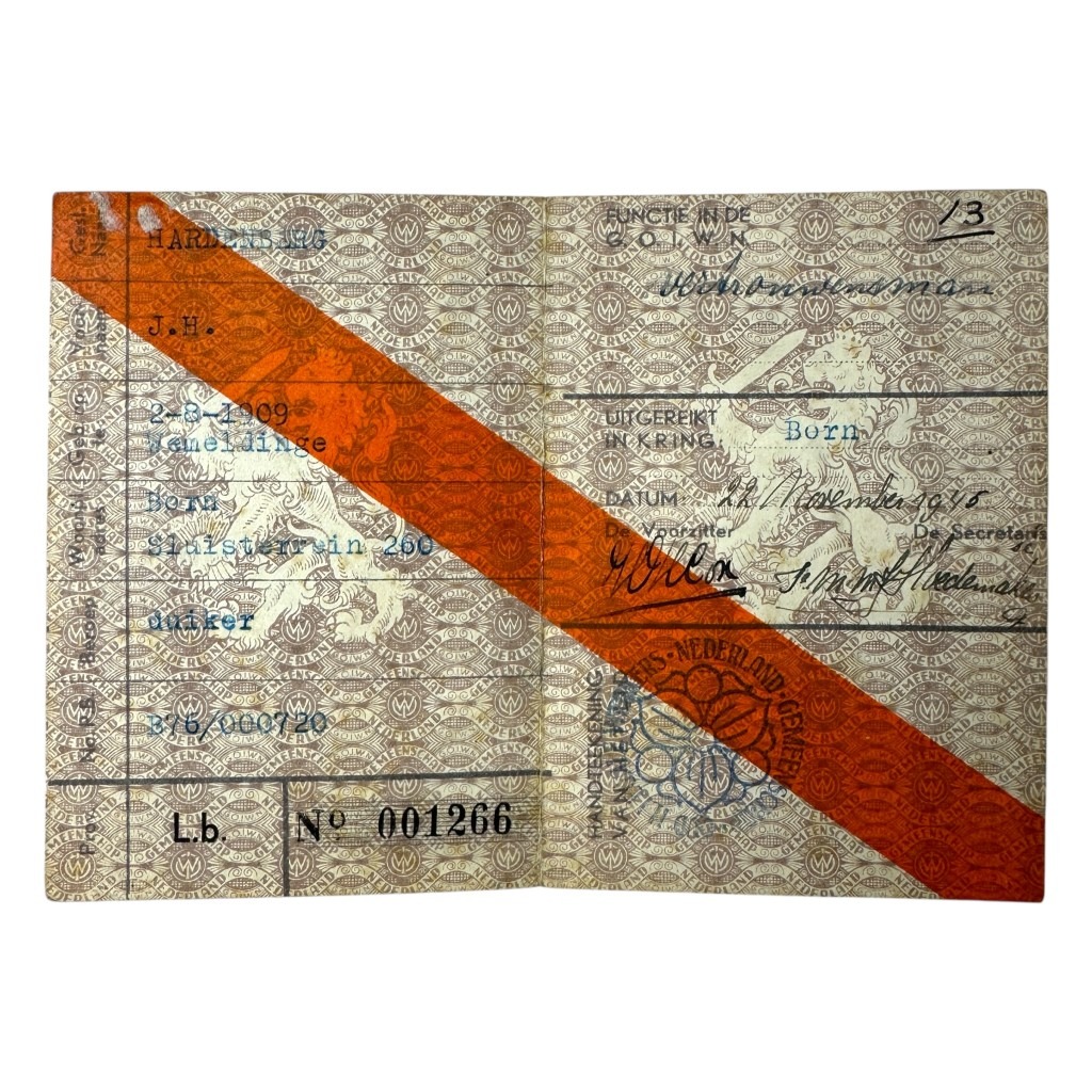 Original WWII Dutch ‘resistance’ membership card Born