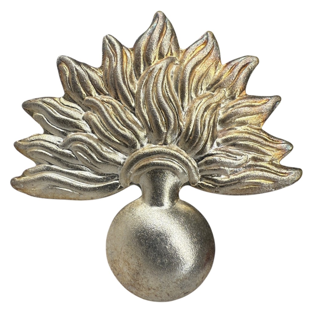 This metal insignia, elegantly designed with a fiery flame above a sphere, symbolizes the authority and discipline of the Schalkhaar Regiment.