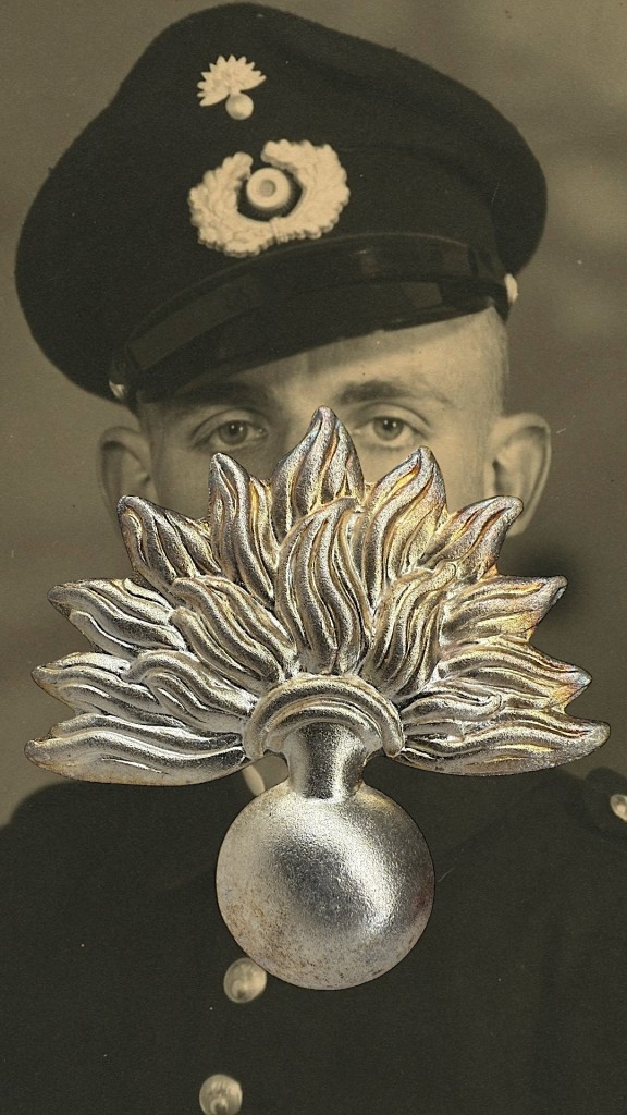 Dit messing embleem, fraai vormgegeven met een vurige vlam boven een bol, symboliseert de autoriteit en discipline van het Schalkhaarregiment. De Schalkhaar- en Staatspolitie stonden onder directe Duitse invloed en werden ingezet voor ordehandhaving, bewaking en het opsporen van verzetsleden.