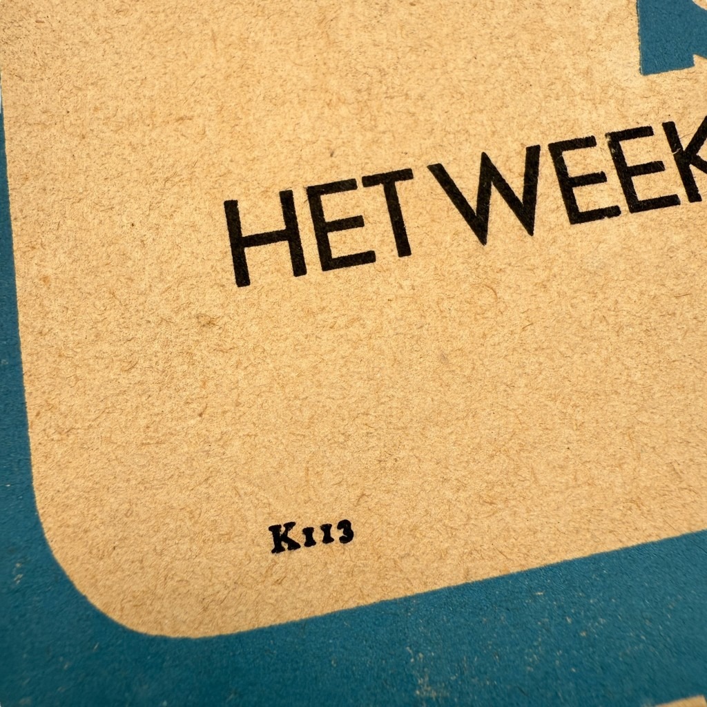 This Dutch cardboard window sign is in used condition and hung in the window of a shop that sold the collaboration newspaper Storm SS.