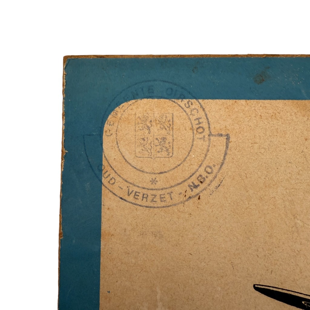 Het bord is voorzien van het originele lusje aan de bovenzijde en bevat een na-oorlogse stempel in de linkerbovenhoek.