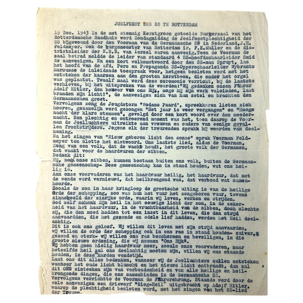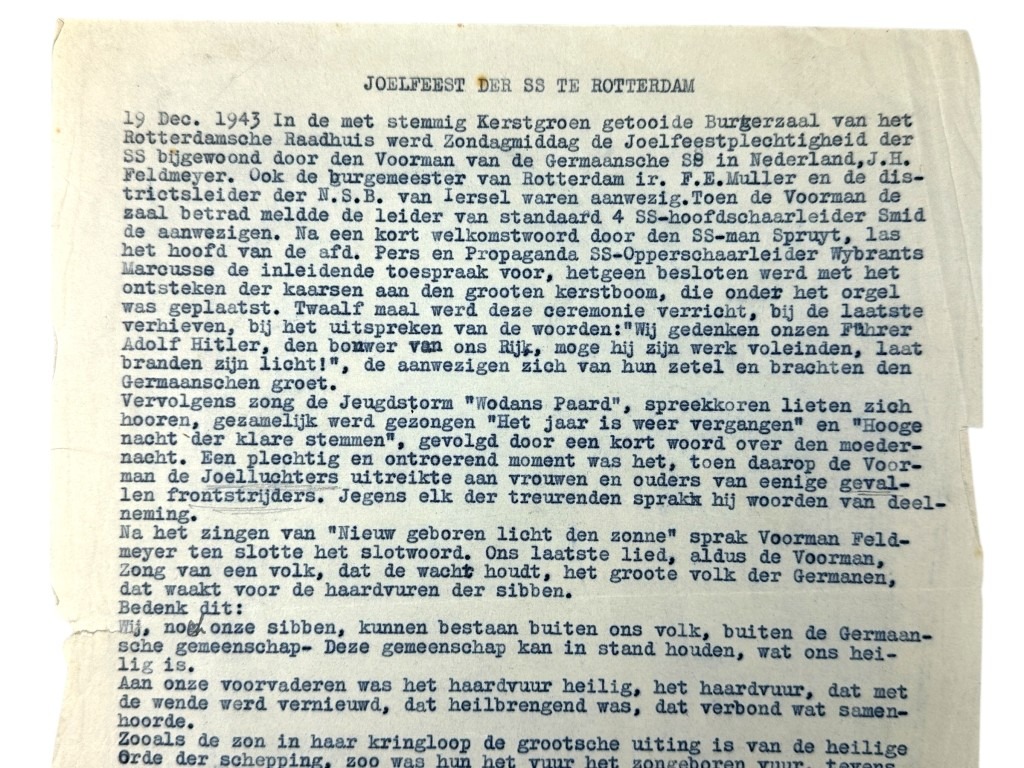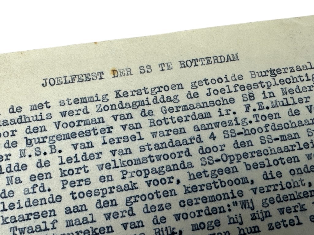Origineel WWII Nederlands SS document ‘Joelfeest in Rotterdam’