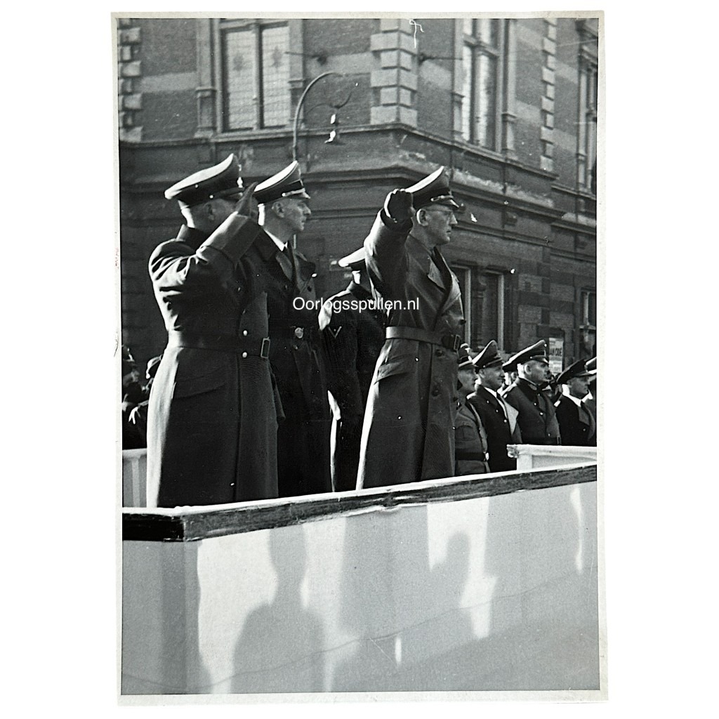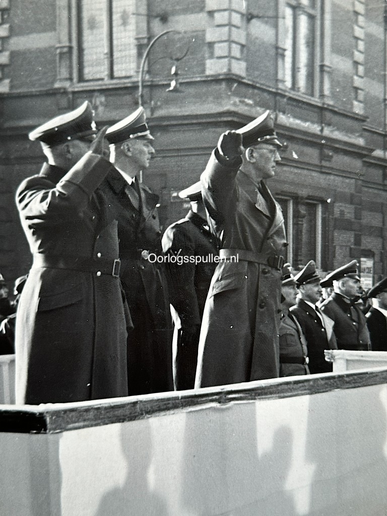 Deze Nederlandse SS foto is in goede conditie en daarop zijn Dr. Arthur Seyss-Inquart en Hanns Albin Rauter te zien in Amsterdam.