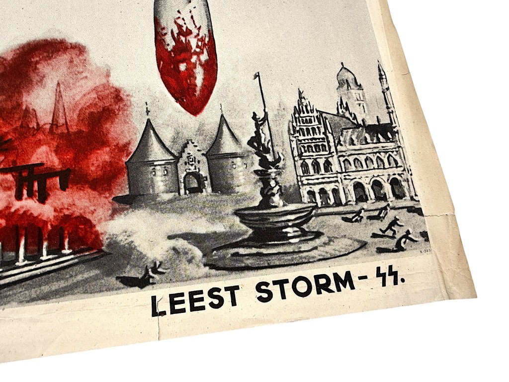 Onderaan is de herkomst vermeld met “Leest Storm – SS”, wat duidelijk verwijst naar de propagandalijn van de SS en het tijdschrift Storm.