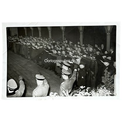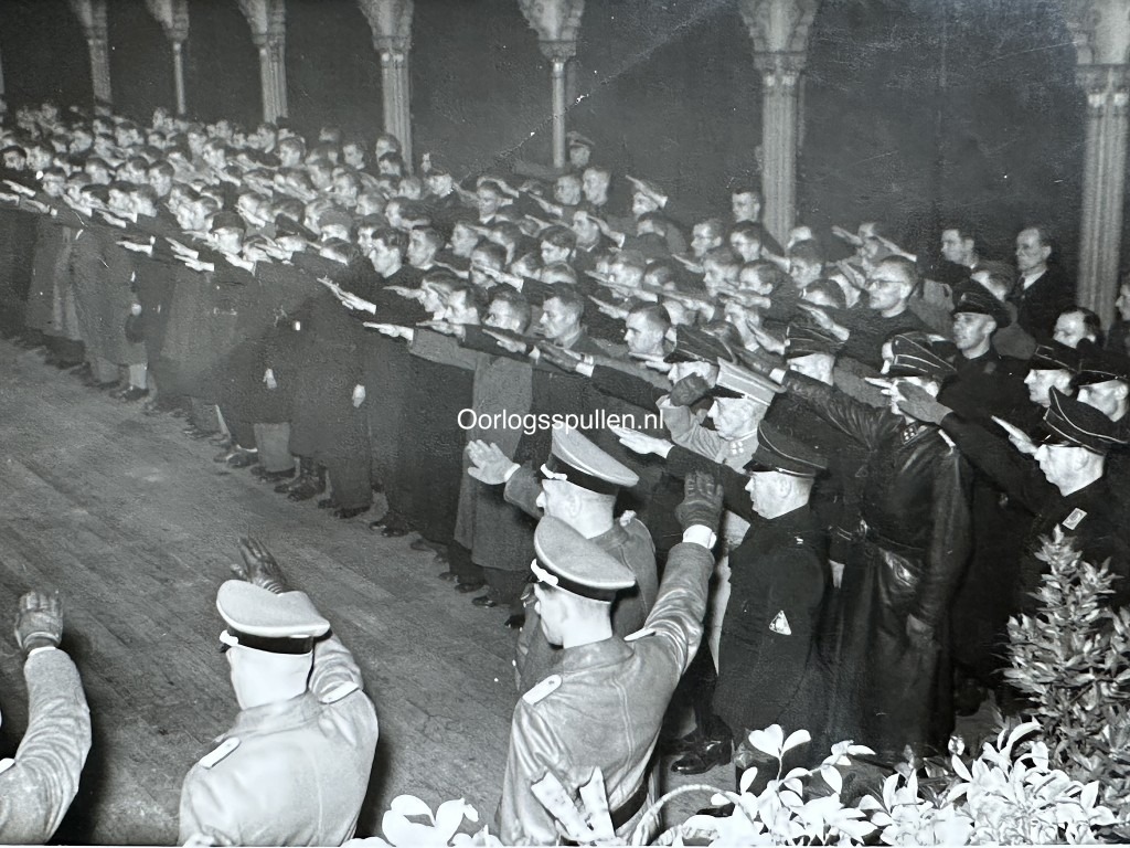 Op de foto staat onder andere NSB leider Anton Mussert, Bevelhebber van het Vrijwilligerslegioen Nederland Hendrik Seyffardt en SS-Gruppenführer Hanns Albin Rauter.