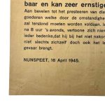 The Dutch warning poster is in used condition and was used on April 16, 1945 in Nunspeet near Ermelo.