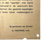 De Geallieerde opmars was in aantocht en de burgemeester van Ermelo verzocht de bevoling zich kalm en rustig te houden.