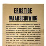 De Nederlandse waarschuwing poster is in gebruikte conditie en werd gebruikt op 16 april 1945 in Nunspeet bij Ermelo.