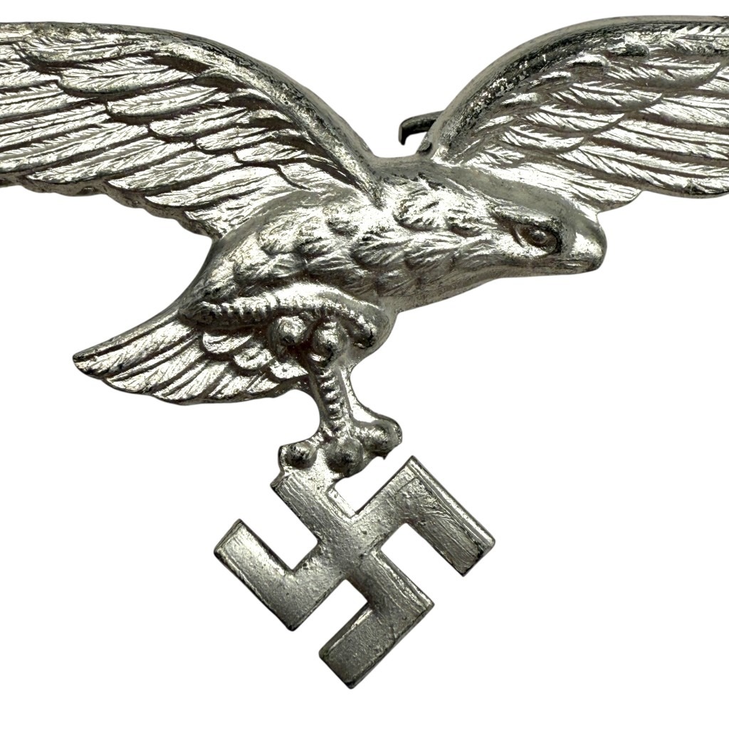 This Luftwaffe visor cap eagle is in good condition, complete with prongs and was produced in Flanders (Belgium) during World War II.