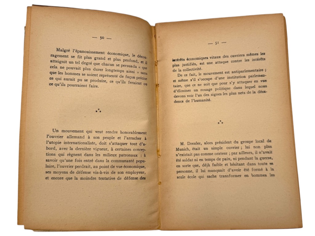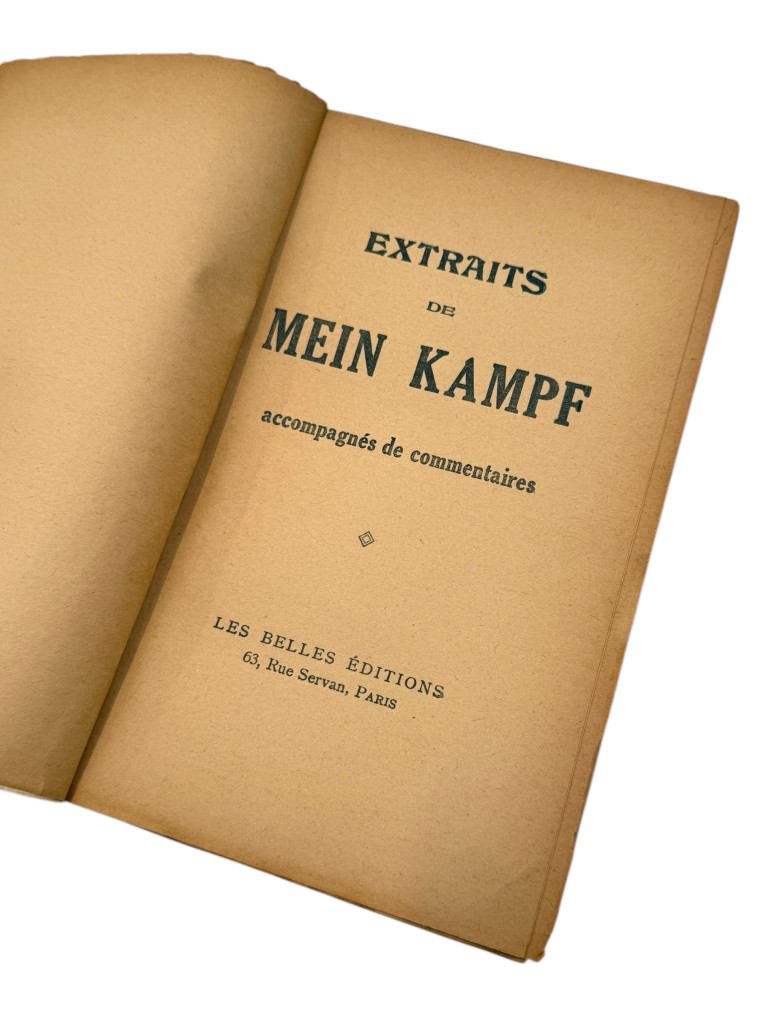 This original Mein Kampf (Mon Combat) book is a rare French edition from the 1930s, published by Les Belles Éditions in Paris and printed in Belgium.