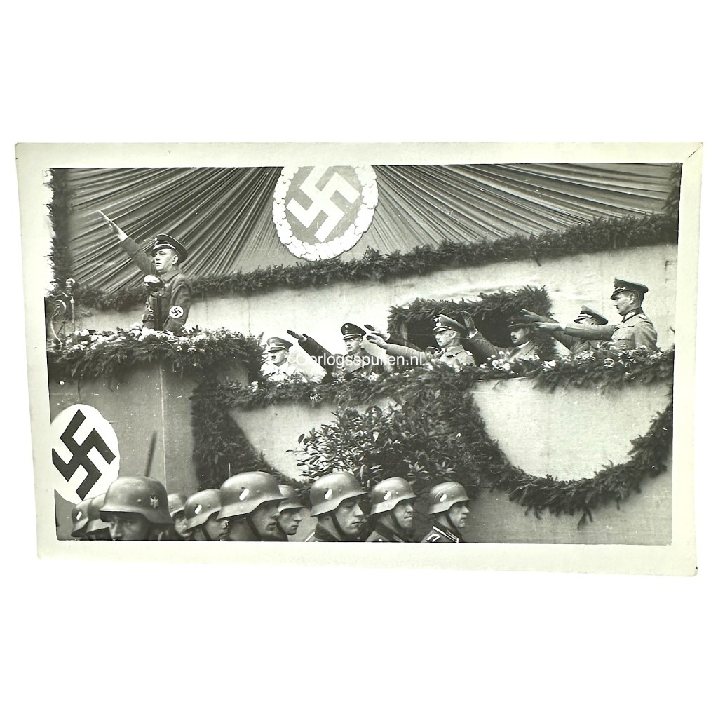 Deze foto is in goede conditie en daarop is Adolf Hitler in Oostenrijk op te zien.