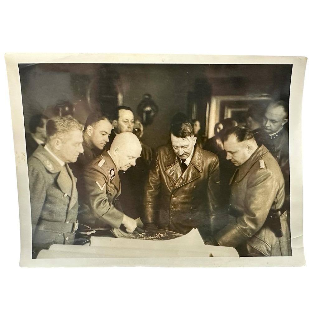 This photo is in good condition and it shows Adolf Hitler with several SS officers.