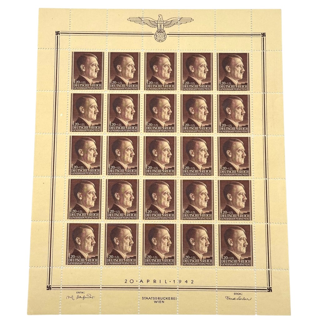 It is a complete sheet of portrait stamps, issued on April 20, 1942, and printed by the Staatsdruckerei Wien.