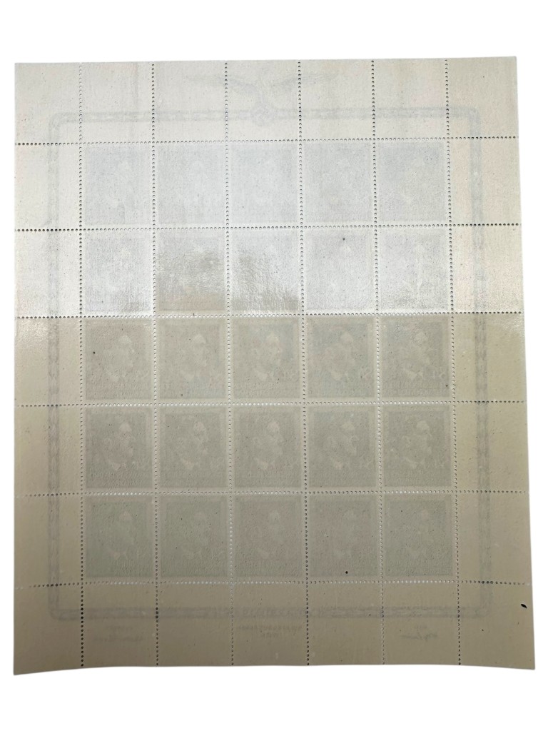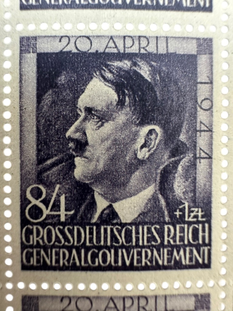 This German stamp sheet from 1942 depicts Adolf Hitler and is a historically interesting collector’s item.