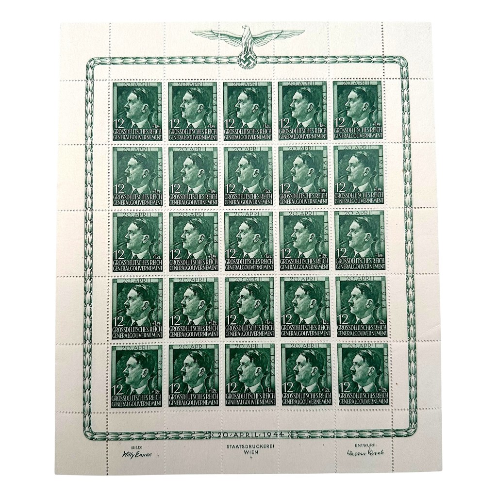 Original WWII German Adolf Hitler stamp sheet 20 April 1942
