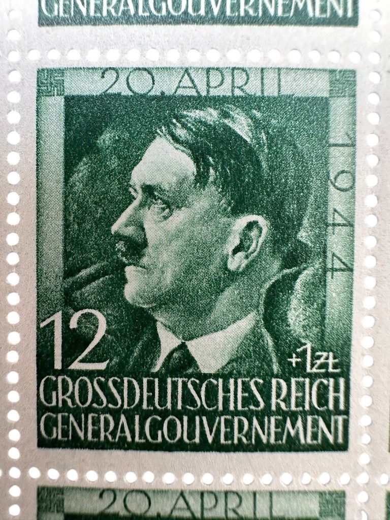 This German stamp sheet from 1942 depicts Adolf Hitler and is a historically interesting collector’s item.