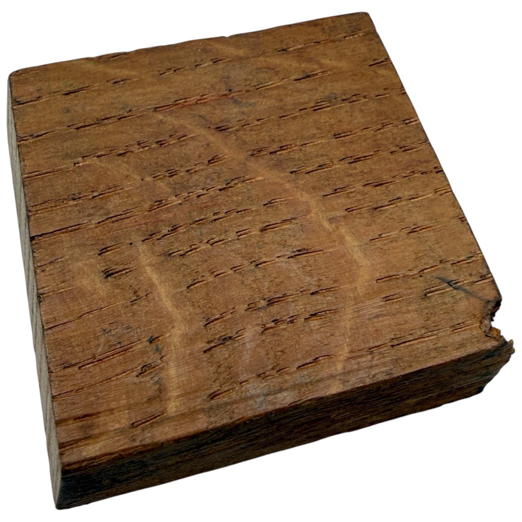 The wooden block shows clear signs of age and use, consistent with intensive wartime service.