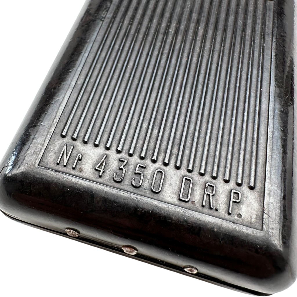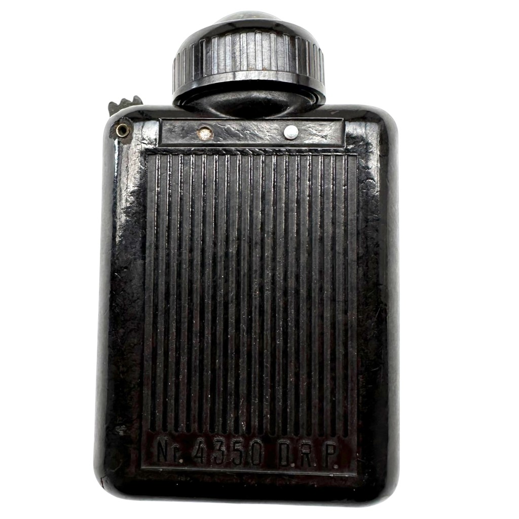 This model, marked “Nr. 4350 D.R.P.”, is a typical military-issued flashlight as used by German troops during the war years.
