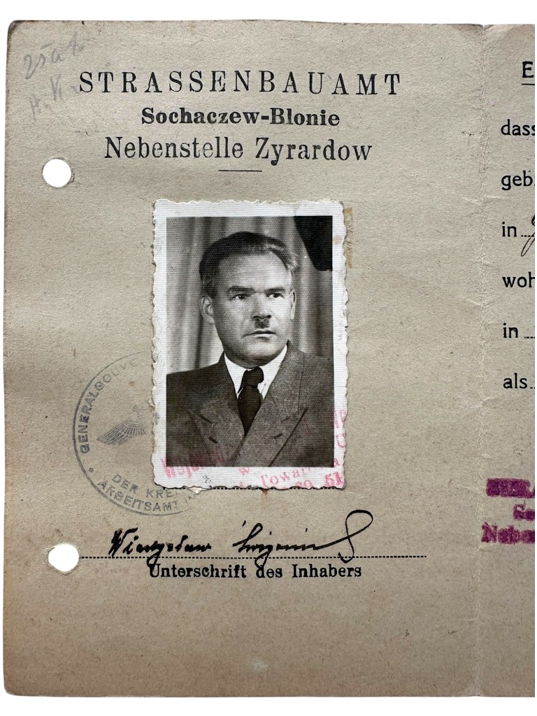 Original WWII German Ausweis Strassenbauamt Sochaczew-Blonie Zyrądów in Poland 1943