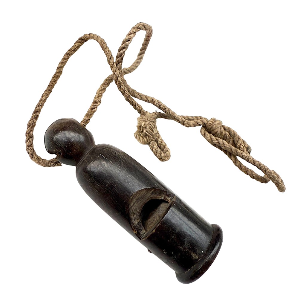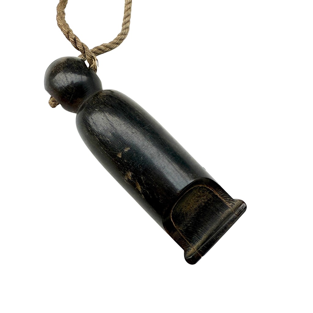 This German whistle is in good condition, working, made of bakelite, and complete with string.
