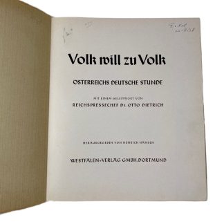 Origineel WWII Duits boek ‘Volk will zu Volk’ Österreichs Deutsche stunde