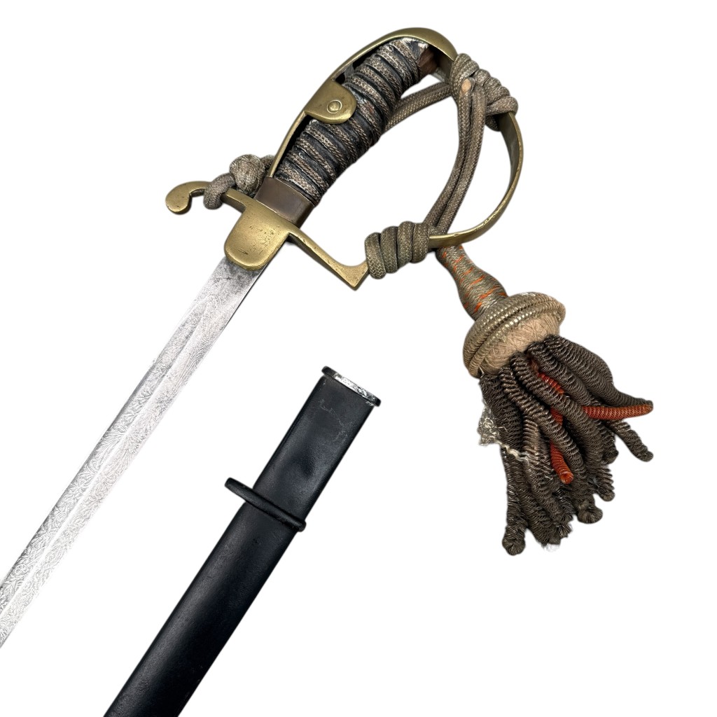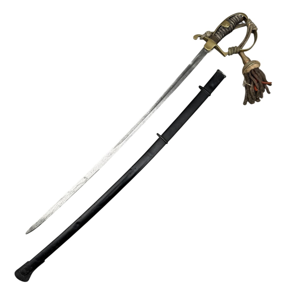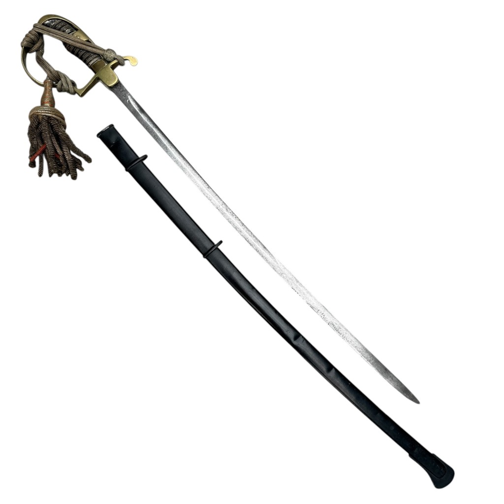 This saber measures approximately 70 cm in length and comes with a matching scabbard.