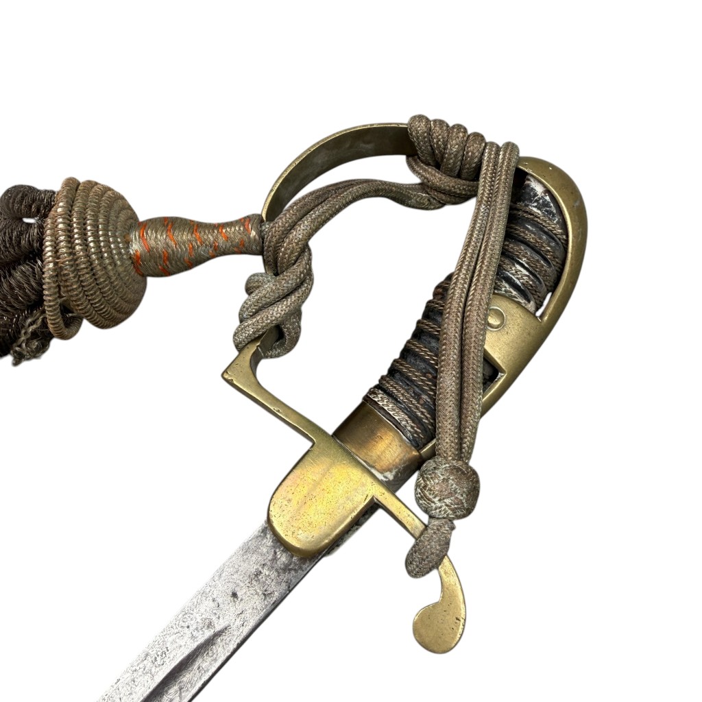 Het model is gebaseerd op militaire sabels en uitgevoerd met een messing handbeschermer.