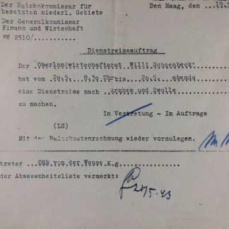 Origineel WWII Duits document Den Haag & Arnhem & Zwolle