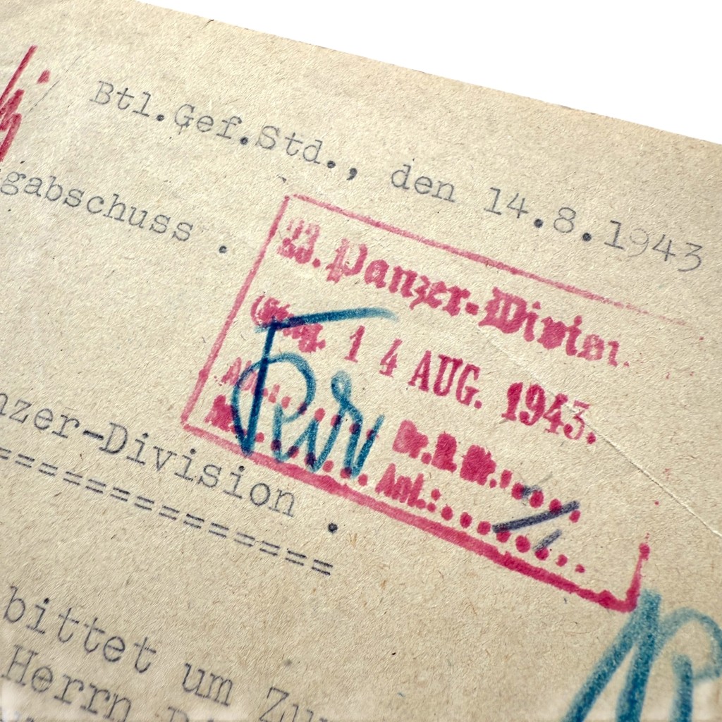 An interesting document for collectors of German WWII frontline administration and Panzer-related items.