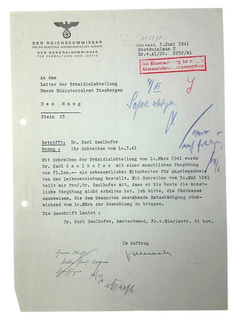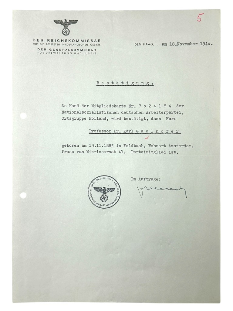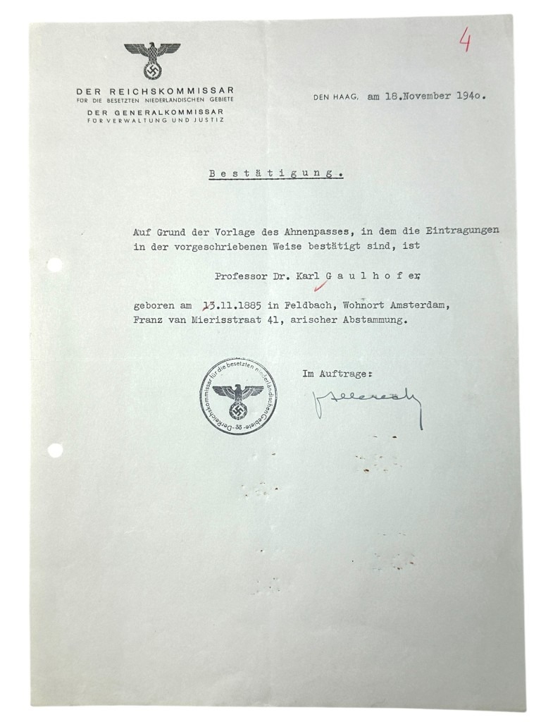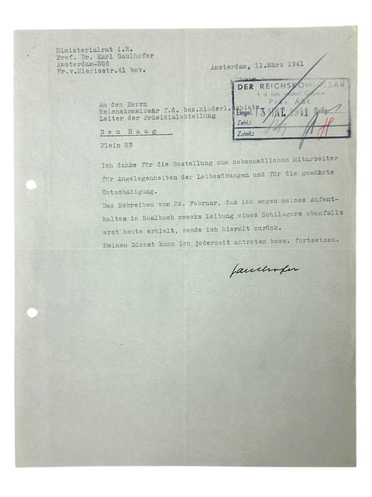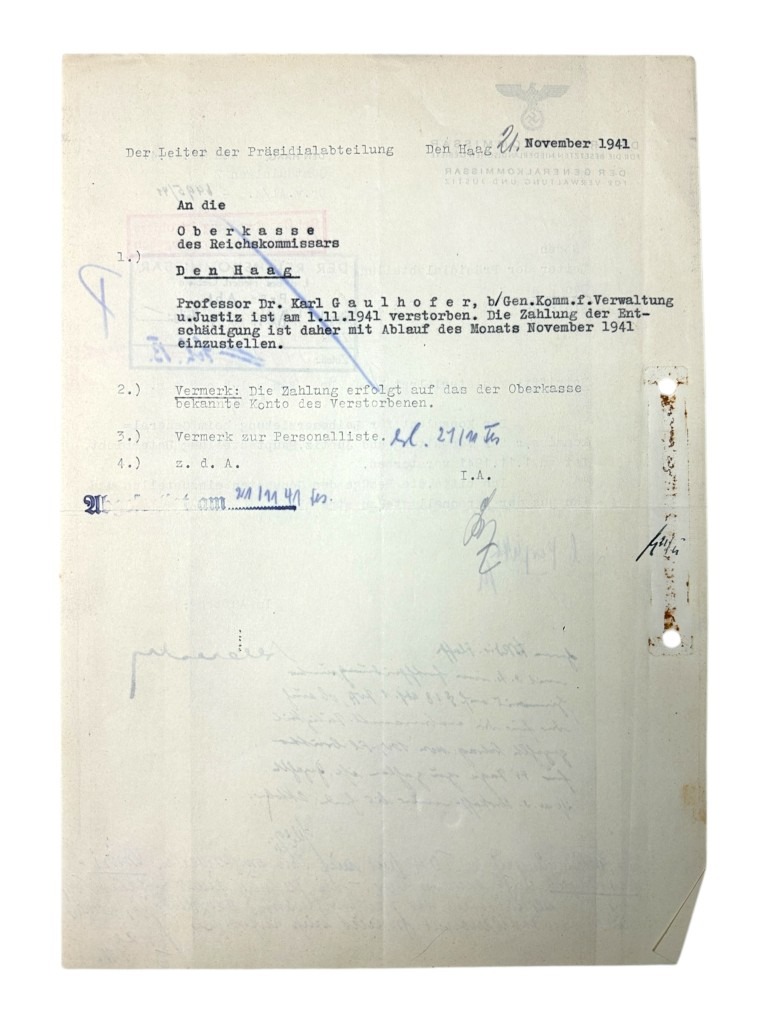 Originele WWII Duitse documenten set Karl Gaulhofer in Amsterdam