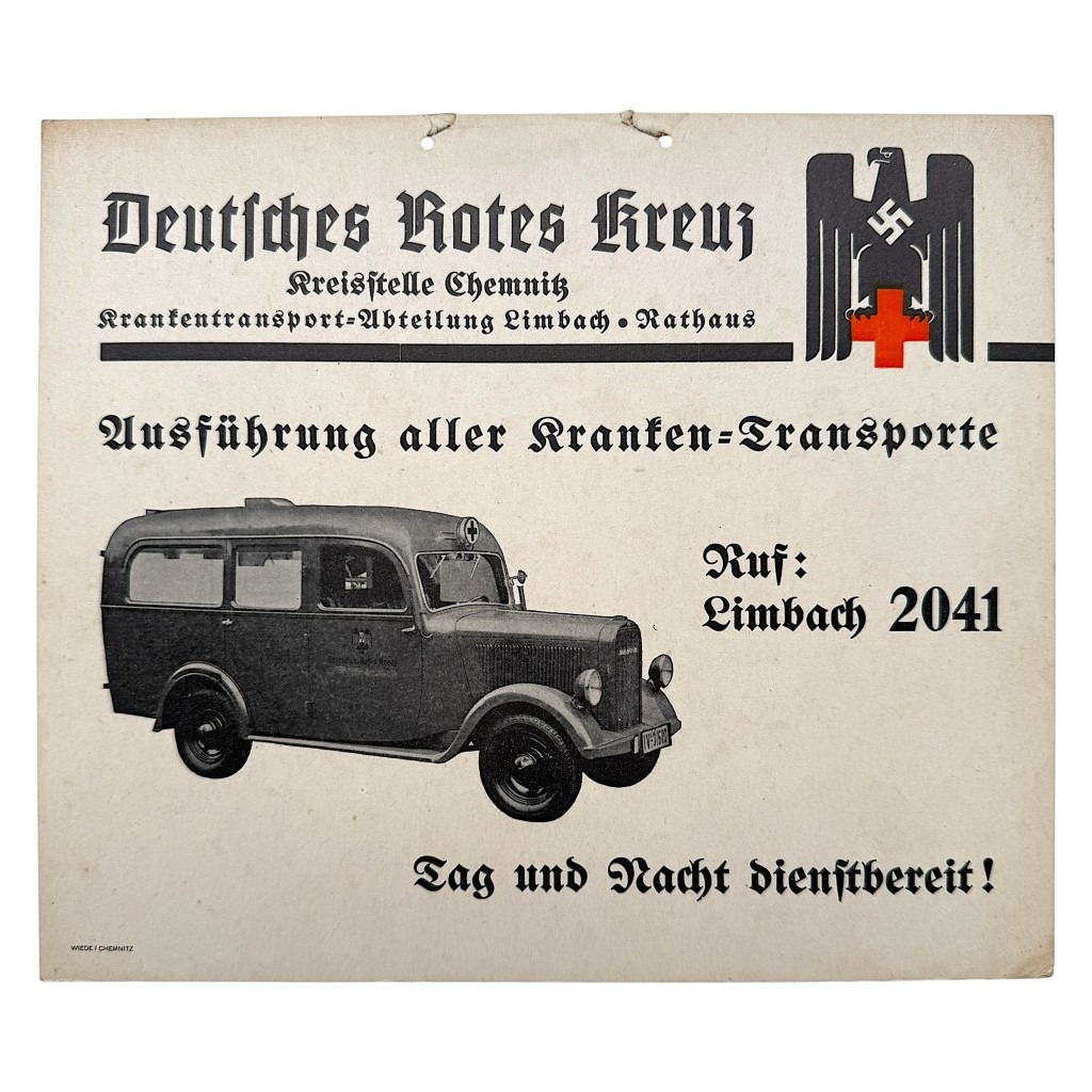 Originele WWII Duitse DRK kartonnen bord Kreisstelle Chemnitz – Krankentransport-Abteilung Limbach