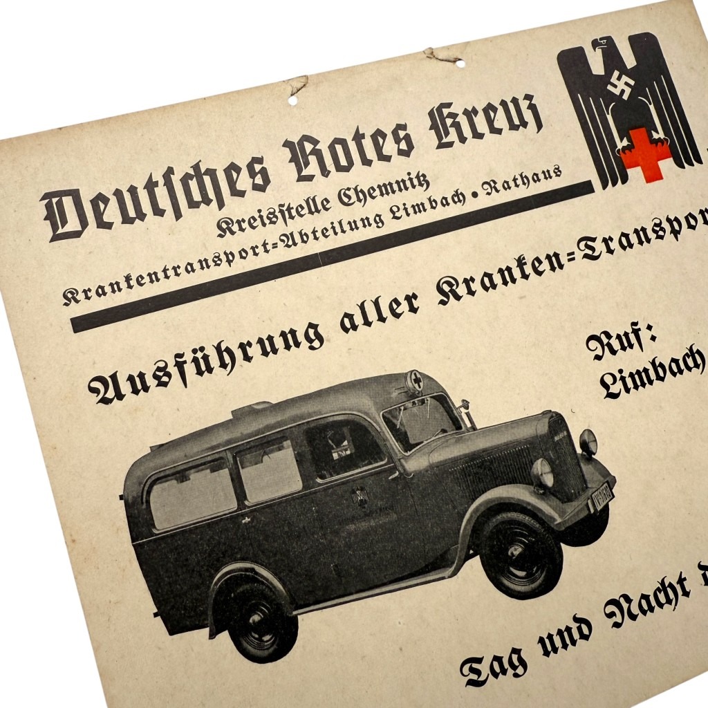 Original WWII German DRK carton sign Kreisstelle Chemnitz – Krankentransport-Abteilung Limbach
