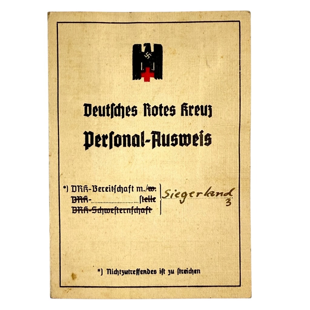 Original WWII German DRK Personal-Ausweis Siegen