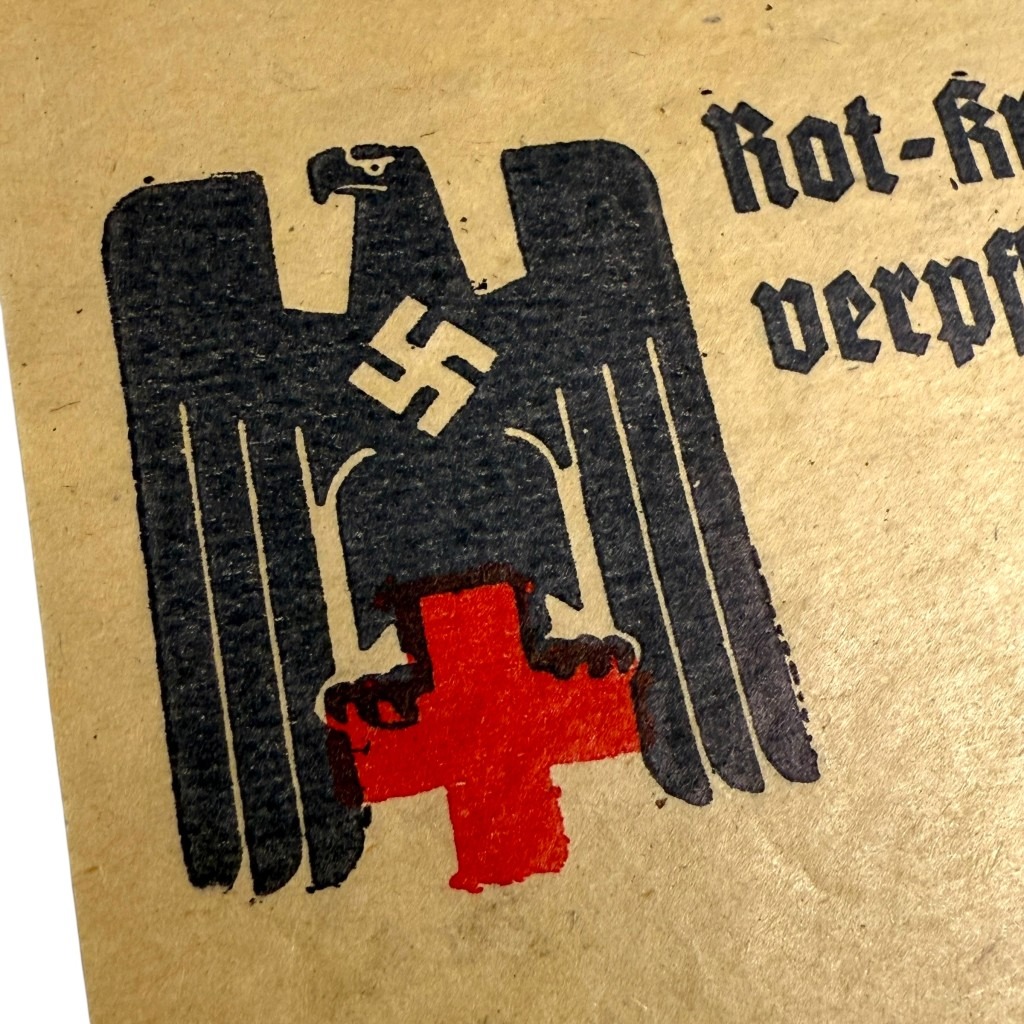 This German DRK placard is in good condition and bears the inscription: Rot-Kreuz-Arbeit – verpflichteter Dank der Heimat an die Front.