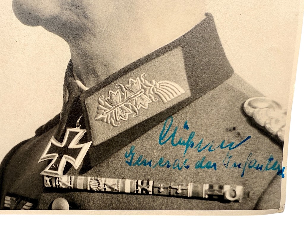 This German portrait photograph from World War II bears a clear signature and is of General and Knight’s Cross recipient Erich-Heinrich Clößner.
