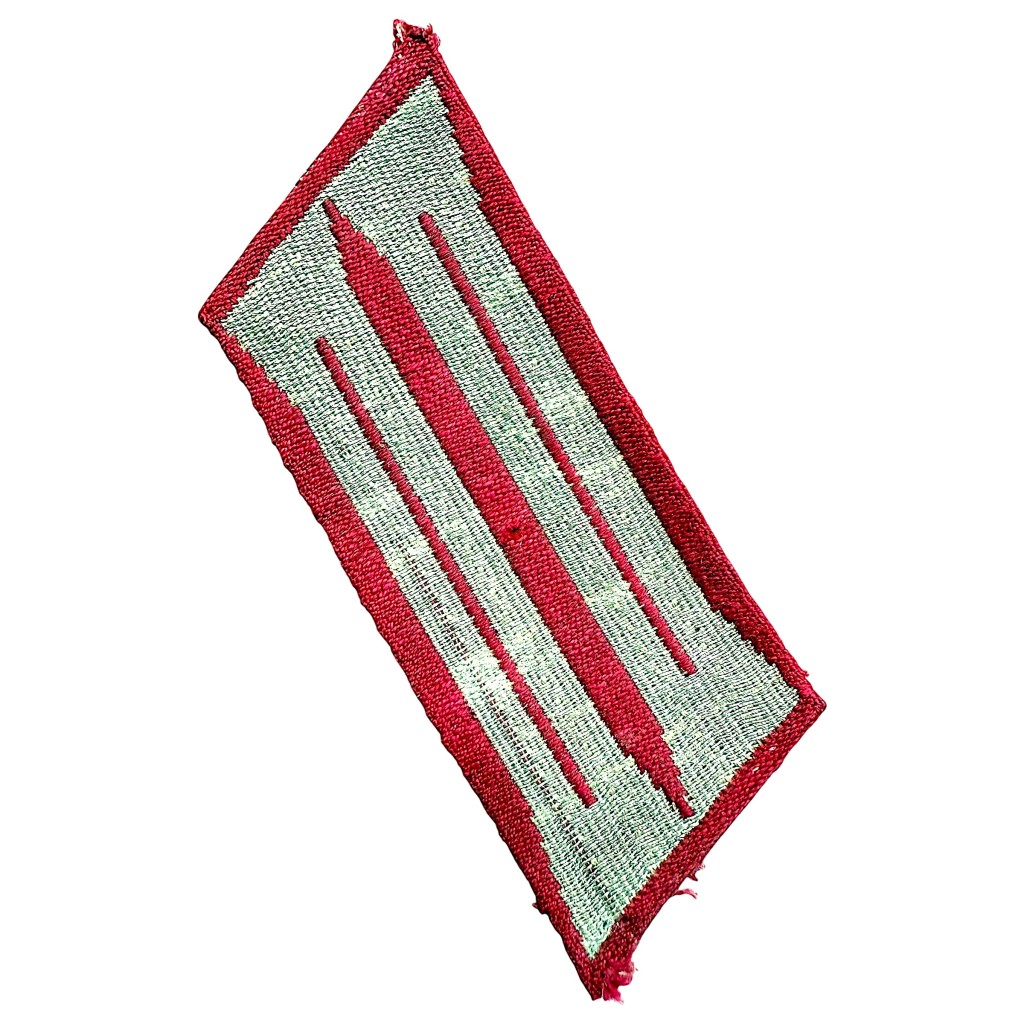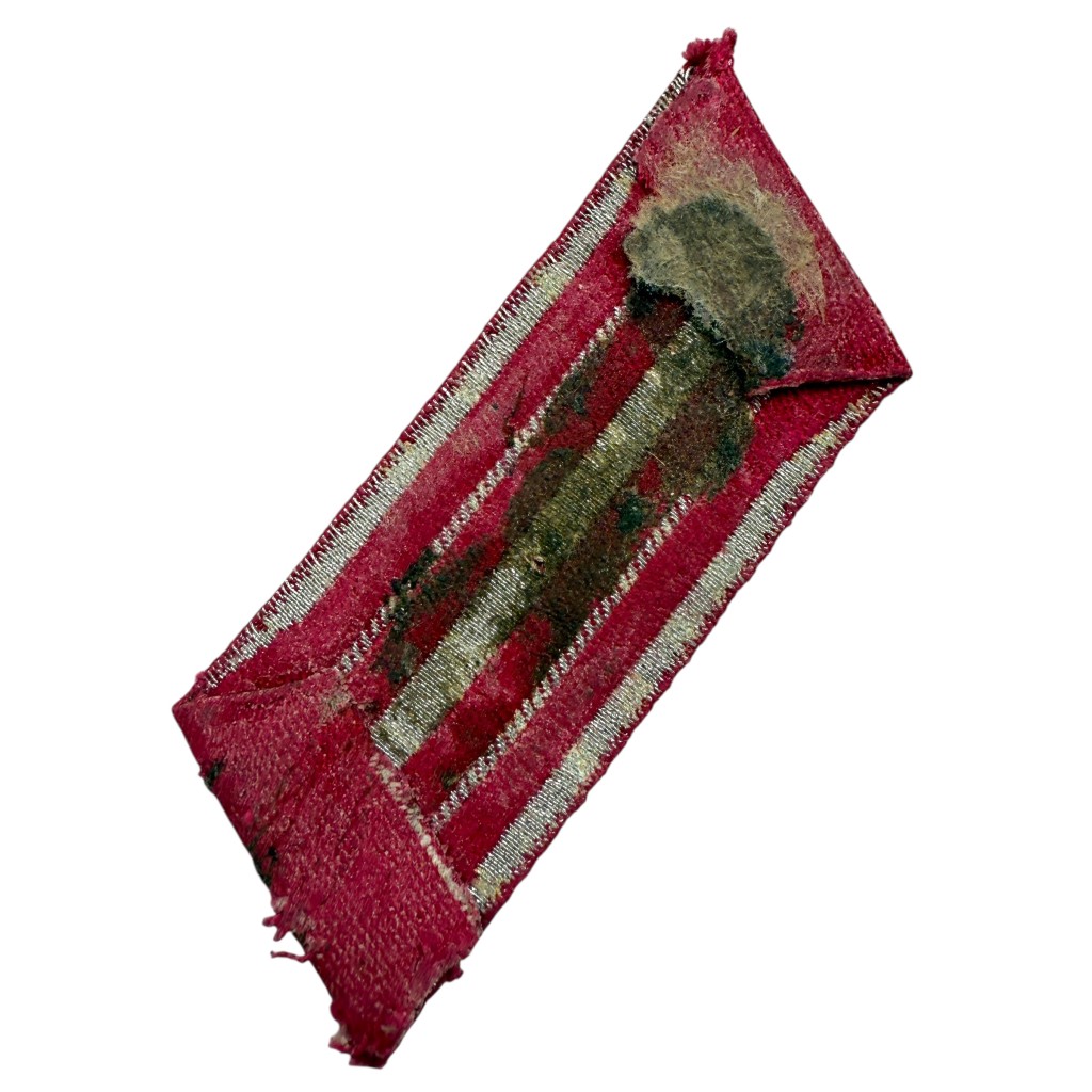 The collar tab is made of crimson red cloth with woven silver stripes, typical for rank distinction within this organization.