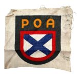 Above the shield, the letters “POA” (the Cyrillic equivalent of ROA) are displayed, representing “Russkaya Osvoboditelnaya Armiya”.