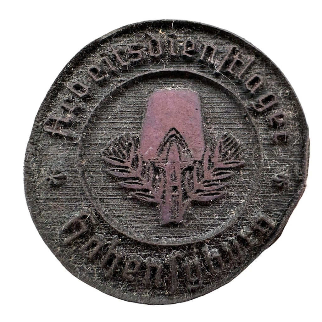 Deze originele stempel van de Freiwillige Arbeitsdienst (FAD) uit de vroege jaren van het Derde Rijk is een historisch object uit de periode waarin de arbeidsdienst nog vrijwillig was, vóór de latere omvorming tot de Reichsarbeitsdienst. De stempel heeft een houten handvat met een ronde stempelplaat en vertoont duidelijke sporen van gebruik en ouderdom. Langs de rand is bovenaan de tekst “Arbeitsdienstlager” te lezen, terwijl onderaan een plaatsnaam begint met “Hohen…”; het resterende deel is lastig te lezen. Voor de duidelijkheid hebben wij tevens een foto in spiegelbeeld toegevoegd, zodat de tekst beter leesbaar is. Een interessant verzamelstuk voor liefhebbers van Duitse WOII-memorabilia, militaria en objecten van de Arbeidsdienst.