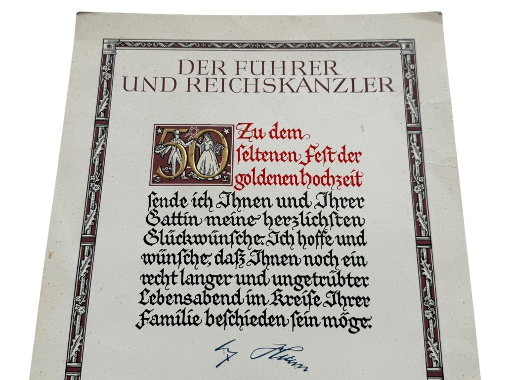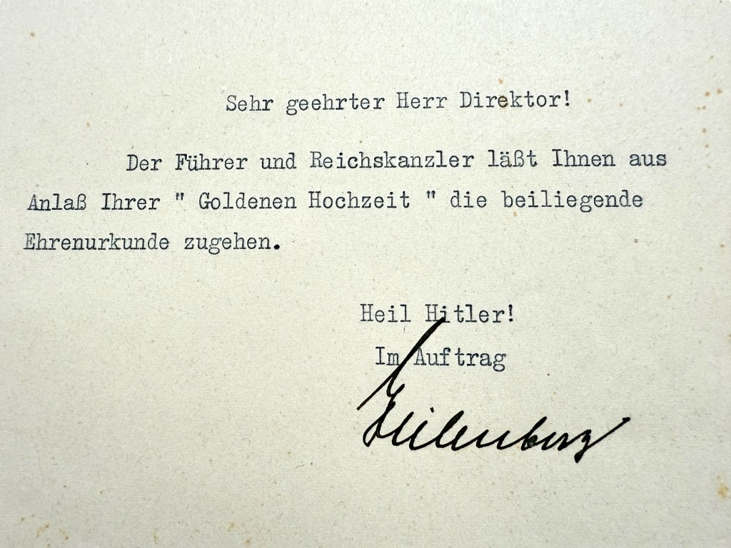 Originele WWII Duitse Goldenen Hochzeit oorkonde met bijbehorende brieven Lindau/Bodensee