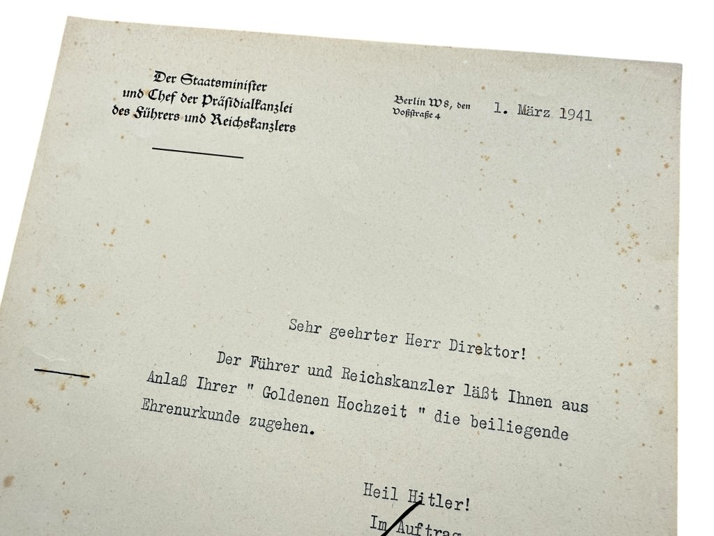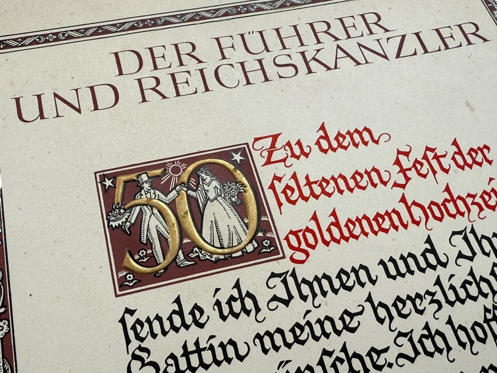 Deze documentenset uit de Tweede Wereldoorlog werd uitgegeven ter gelegenheid van een gouden huwelijksjubileum (Goldene Hochzeit) in 1941.