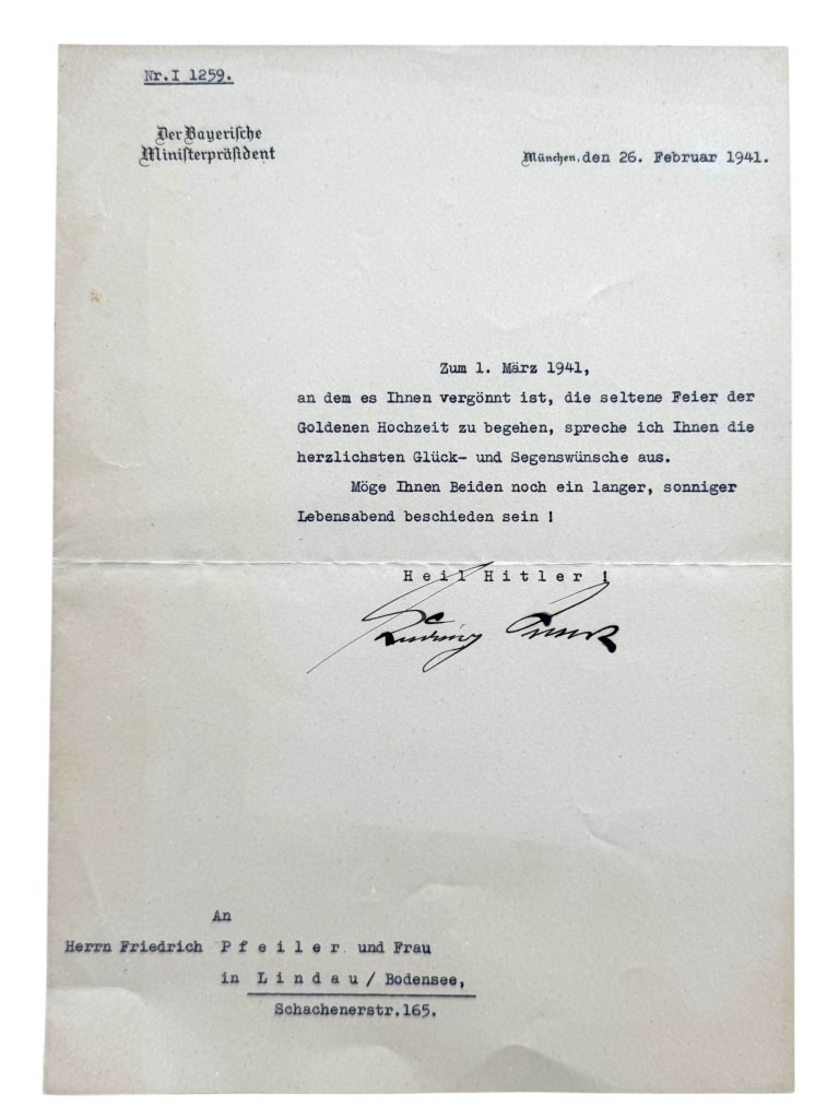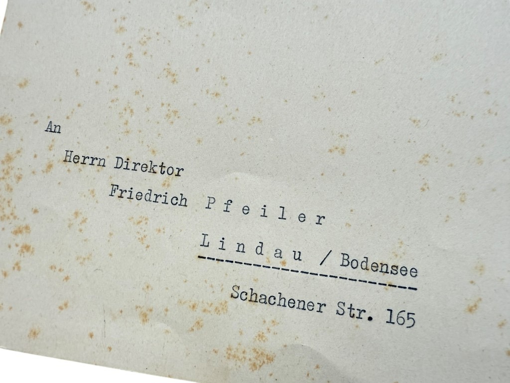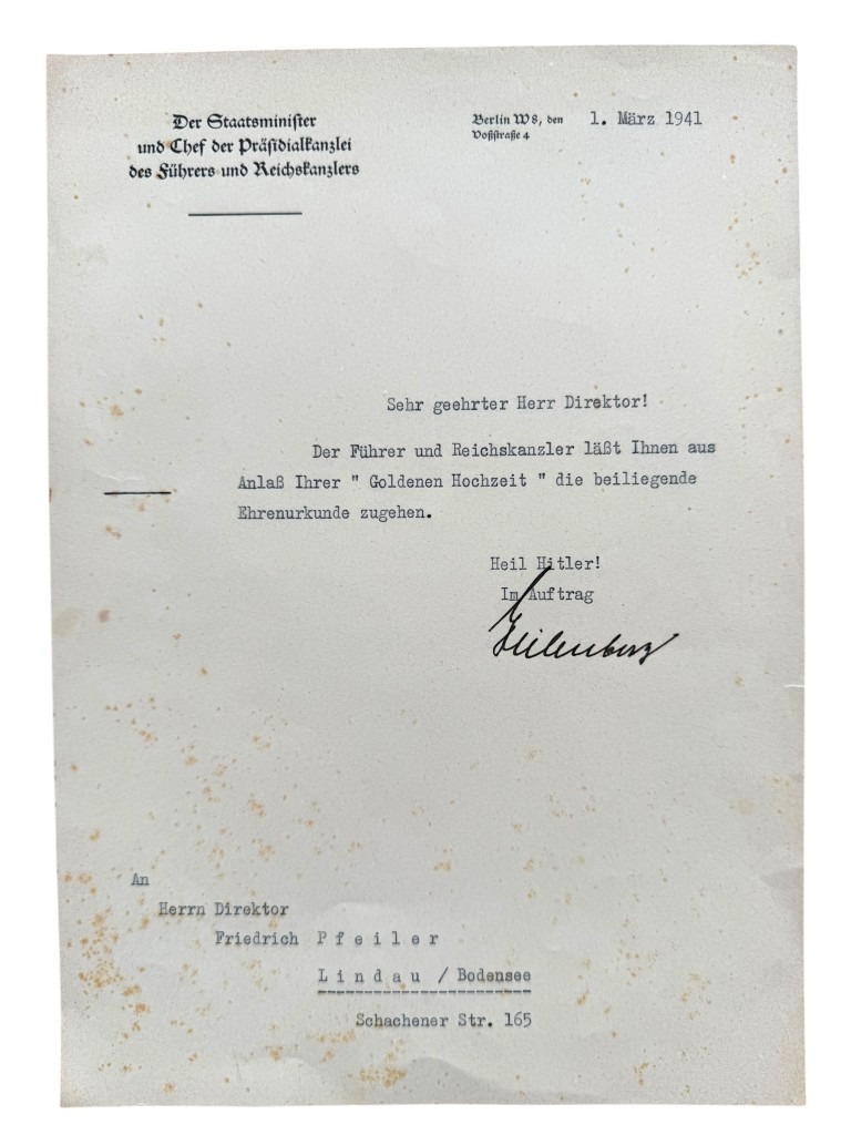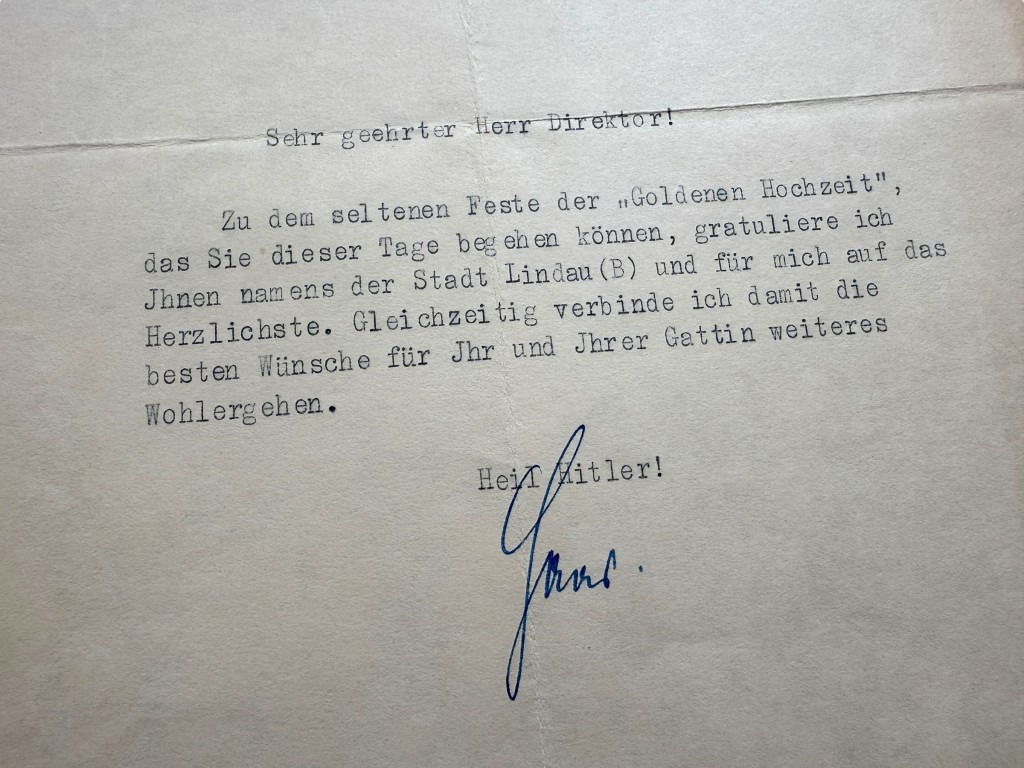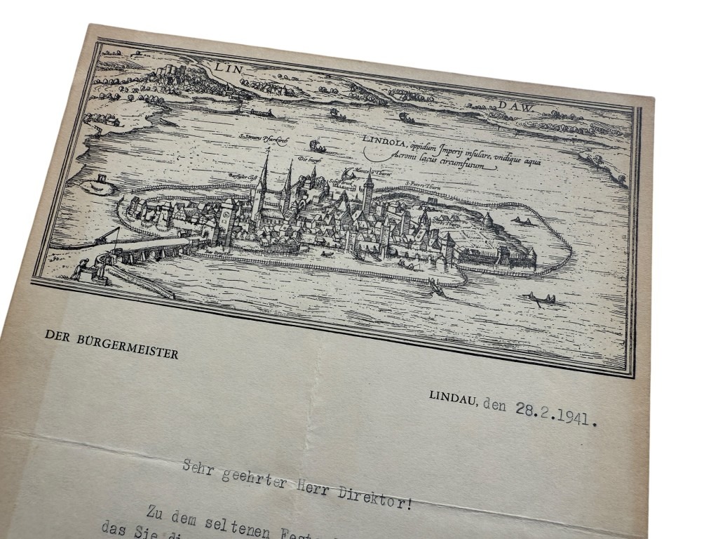 Original WWII German Goldenen Hochzeit citation and letters from the town of Lindau/Bodensee