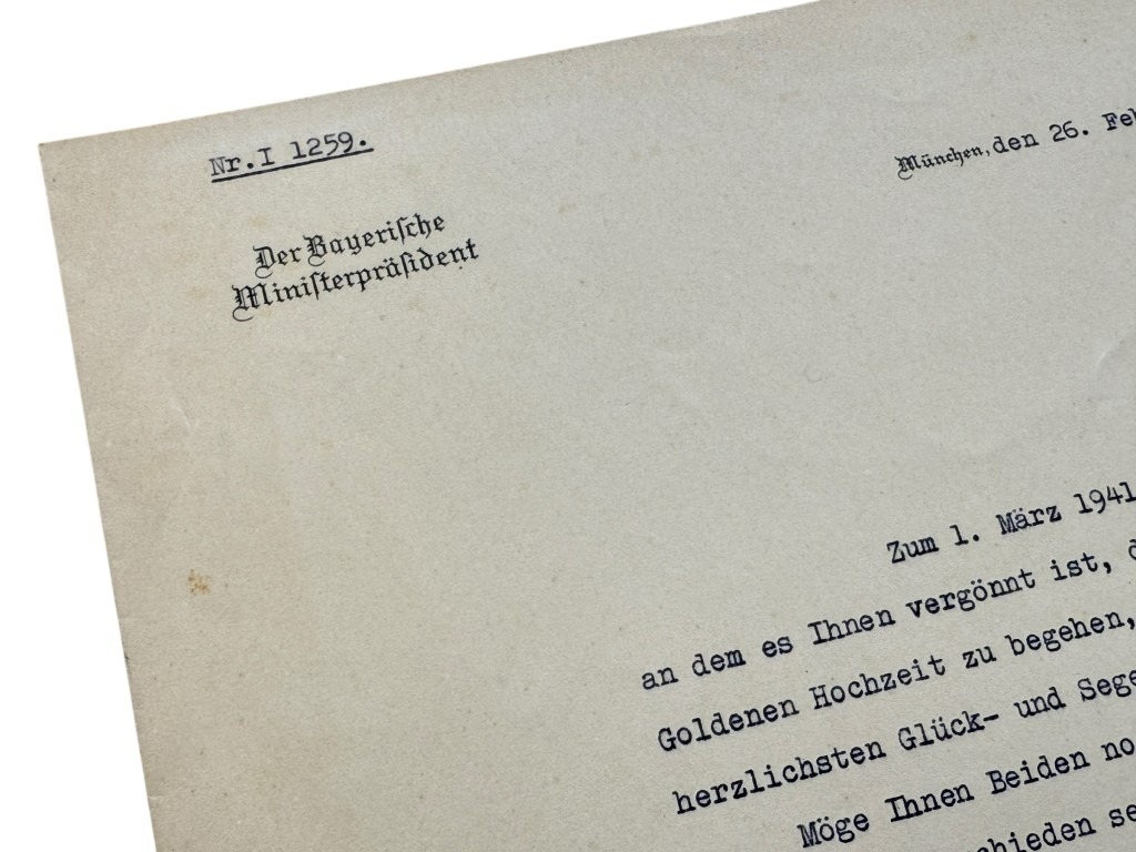 This set of documents from World War II was issued on the occasion of a golden wedding anniversary (Goldene Hochzeit) in 1941.