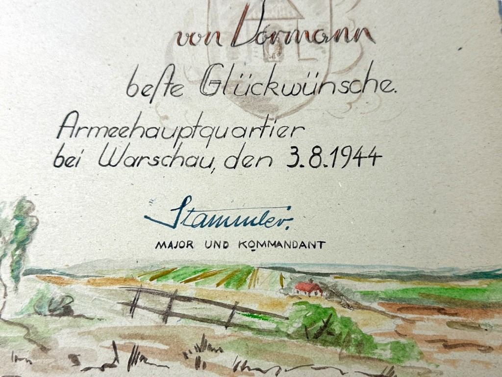 Nikolaus von Vormann was de generaal die het bevel had tijdens de Warschau opstand in 1944 en het bijzondere aan deze oorkonde is dat hij ook tijdens de opstand in Warschau aan hem gegeven is!
