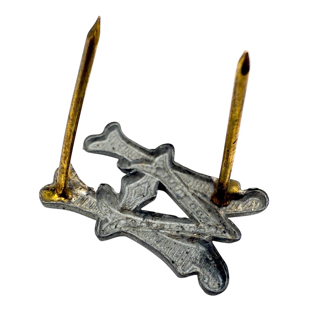 On the reverse, it retains its two original attachment prongs, which were used to secure the emblem firmly to the shoulder board.