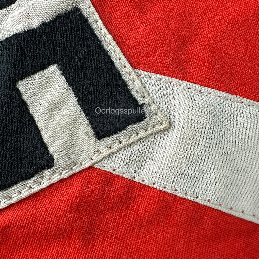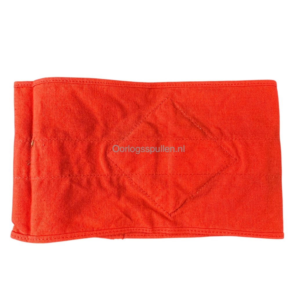 Dit type armband, met een rood-witte band en een zwarte swastika in een ruitvorm, werd vaak gedragen op de linkermouw van het uniform.