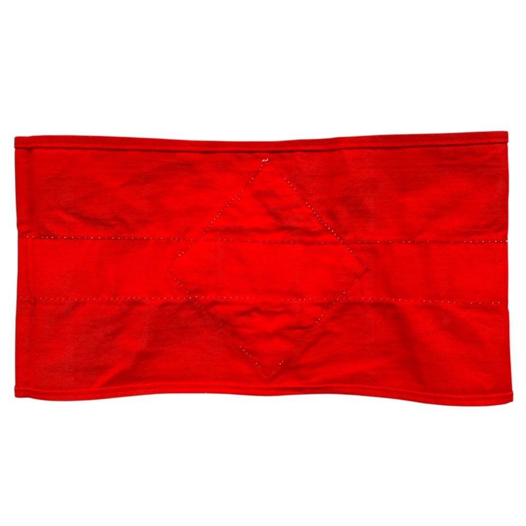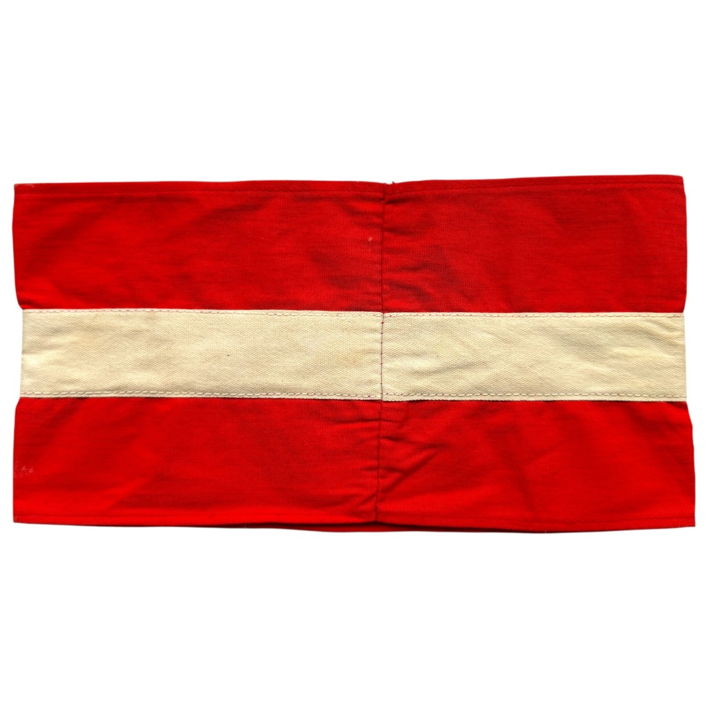 Dit type armband, met een rood-witte band en een zwarte swastika in een ruitvorm, werd vaak gedragen op de linkermouw van het uniform.