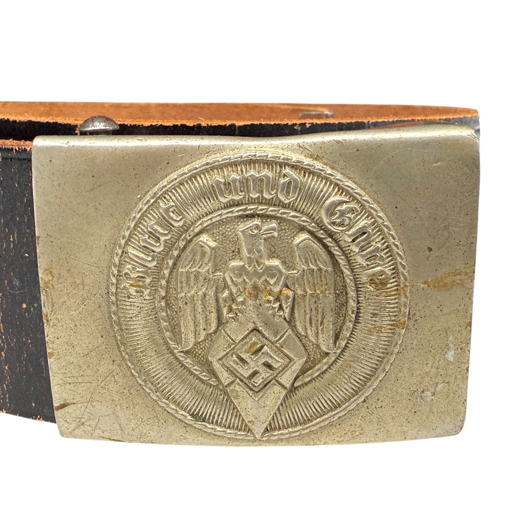 This German Hitler Youth belt with buckle was worn by members of the Hitlerjugend during the 1930s–1945.